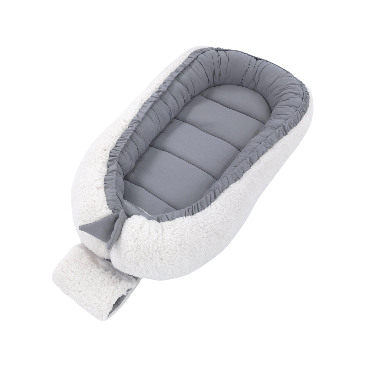 Dubbelzijdig Gebruik: Dit baby nestje is dubbelzijdig, wat betekent dat je het aan beide kanten kunt gebruiken. De ene kant is gemaakt van superzacht teddy katoen, perfect voor de koudere maanden, terwijl de andere kant van ademend katoen ideaal is voor warmere dagen.