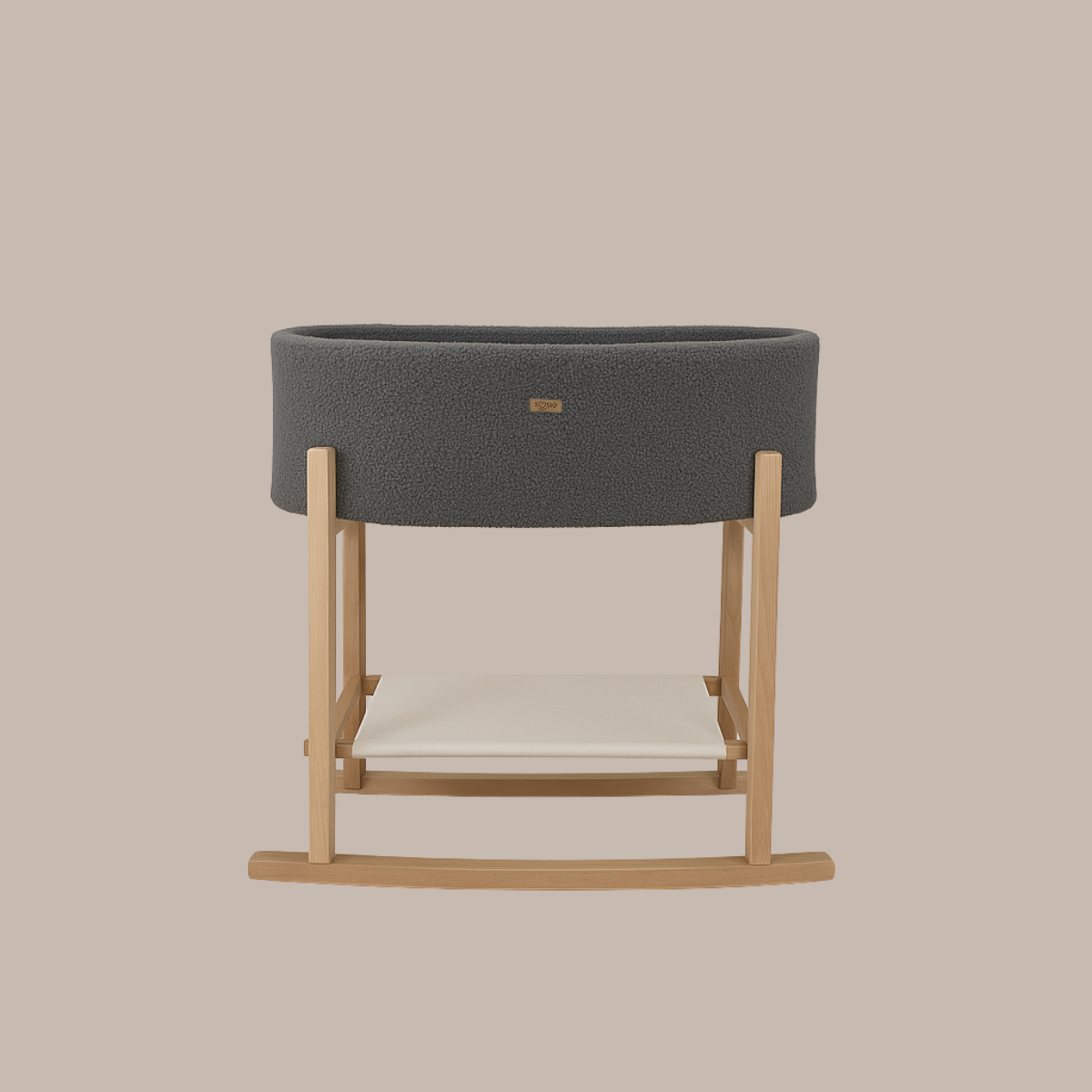 De schommelbasis van natuurlijk beukenhout zorgt voor een kalme, ritmische beweging – zonder elektronica – die helpt ontspannen en sneller in slaap vallen. Het stoffen plankje onderin houdt luiers en accessoires binnen handbereik. Dankzij het compacte formaat (75×36 cm) plaats je de mozesmand gemakkelijk naast je bed of in de woonkamer.