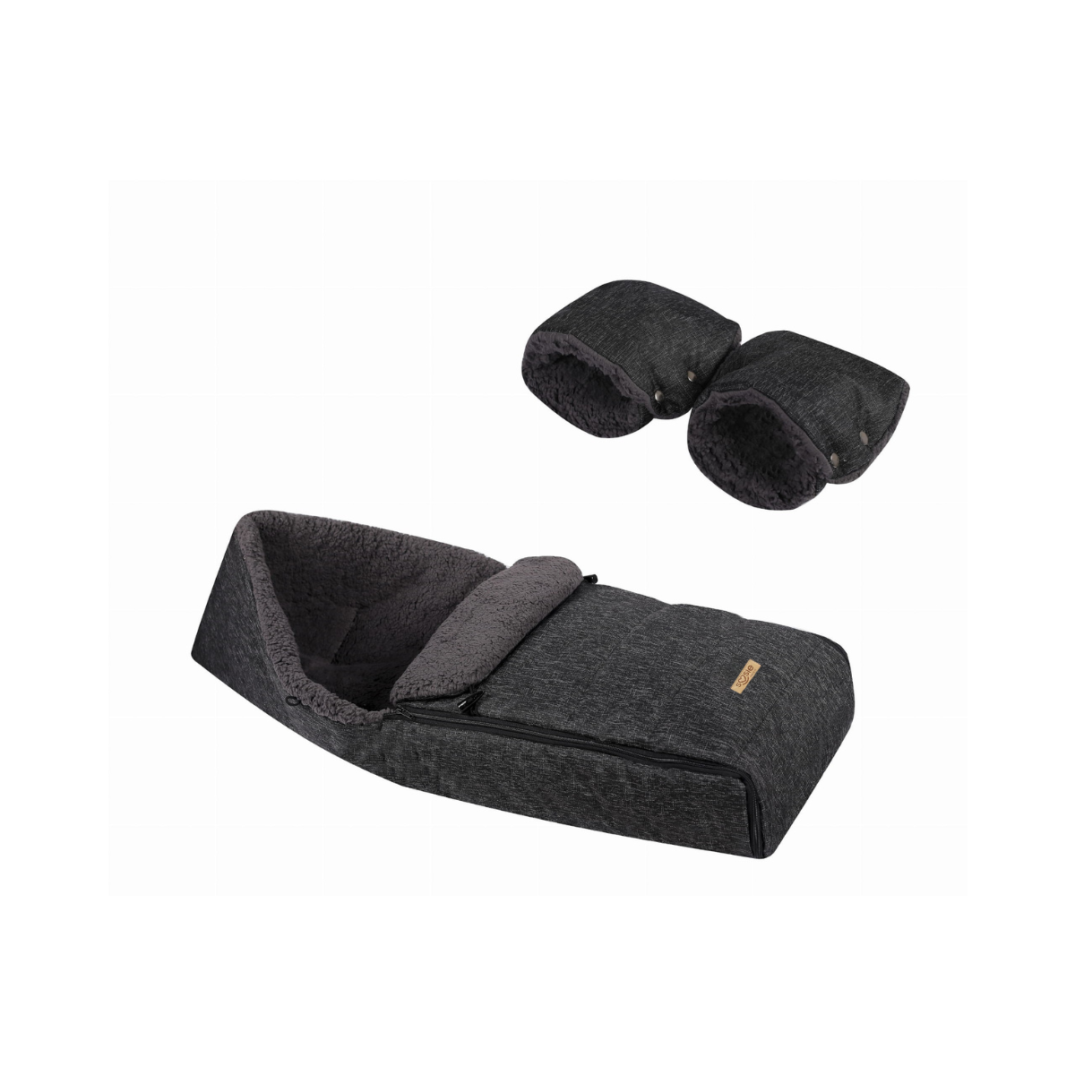 SOOSIE - Winter Kinderwagen Voetenzak + Handmof – Zwart Melange & Grijs Teddy – Universeel – Waterproof – 110 cm