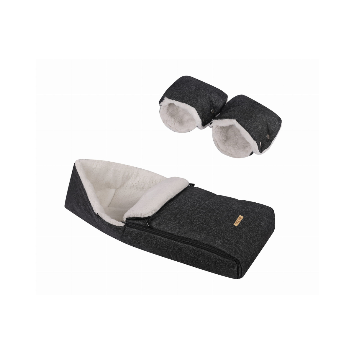 SOOSIE Winter Kinderwagen Voetenzak + Handmof – Zwart Melange & Teddy Crème – Universeel – Waterproof – 110 cm